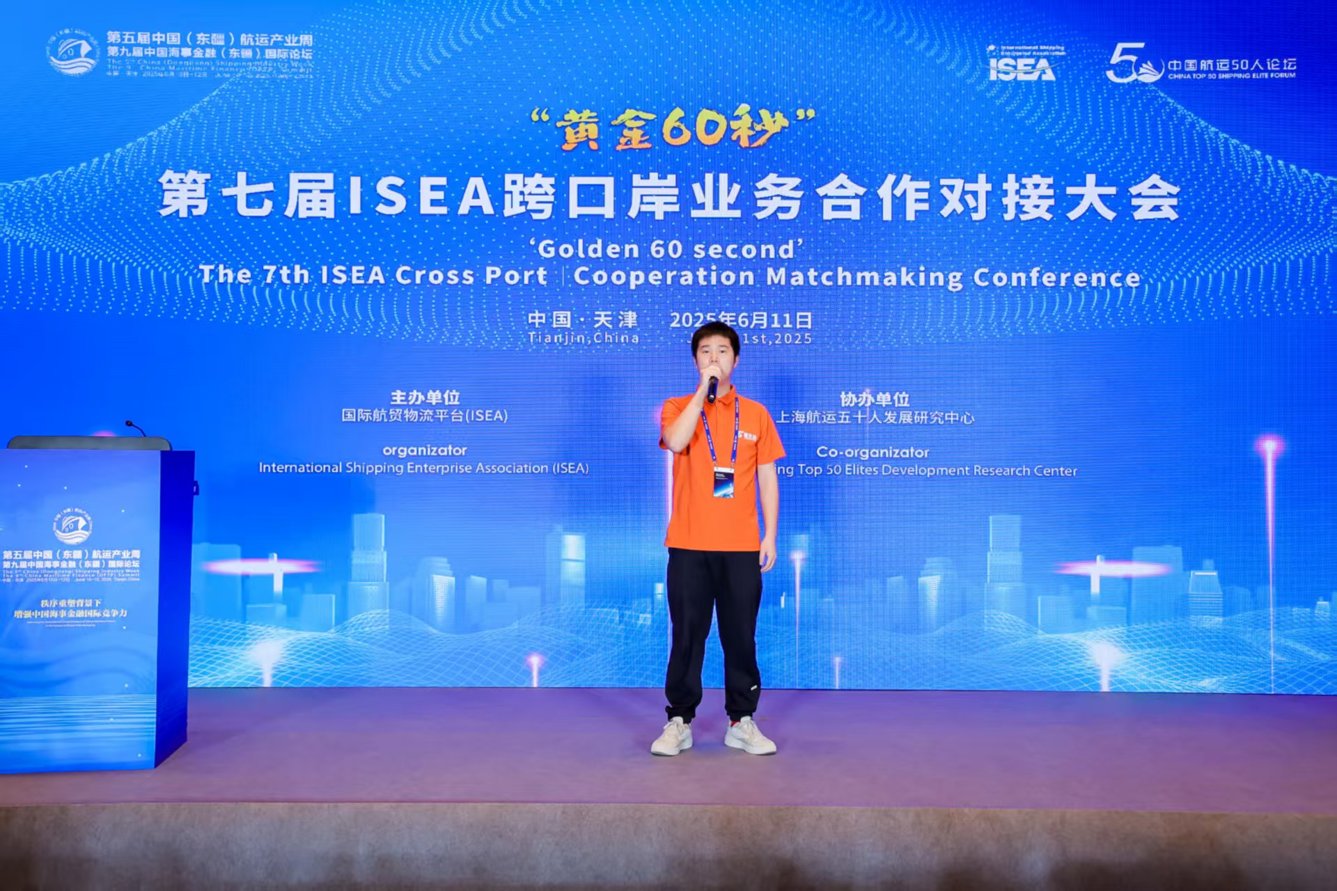 6月11日,国际航贸物流平台(ISEA)在天津成功主办“黄金60秒”——第七届跨口岸业务合作对接大会。本次大会汇聚超80家会员企业的近百名行业嘉宾,现场座无虚席、交流热烈,省多多北美卡车平台受邀参会,大客户经理熊鼎先生登台发表“黄金60秒”主题演讲,向全场嘉宾精准传递品牌核心价值与服务优势。